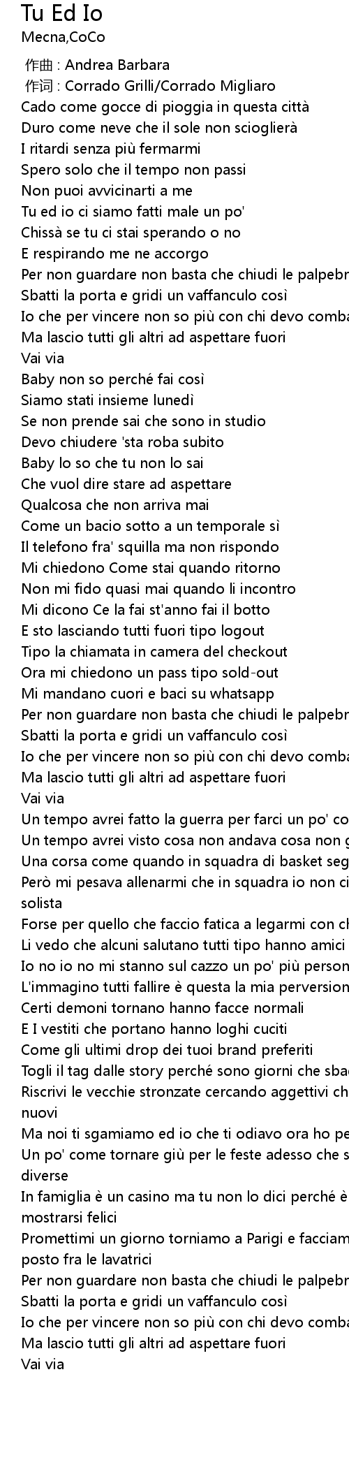 | [02:53.47] | Io no io no mi stanno sul cazzo un po' piu persone |