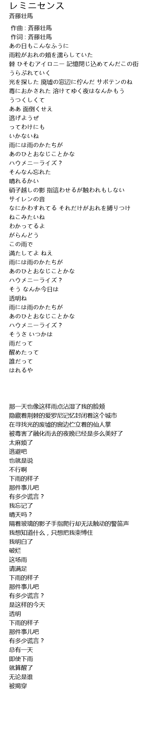 | [00:01.000] | 作词 : 斉藤壮馬 |