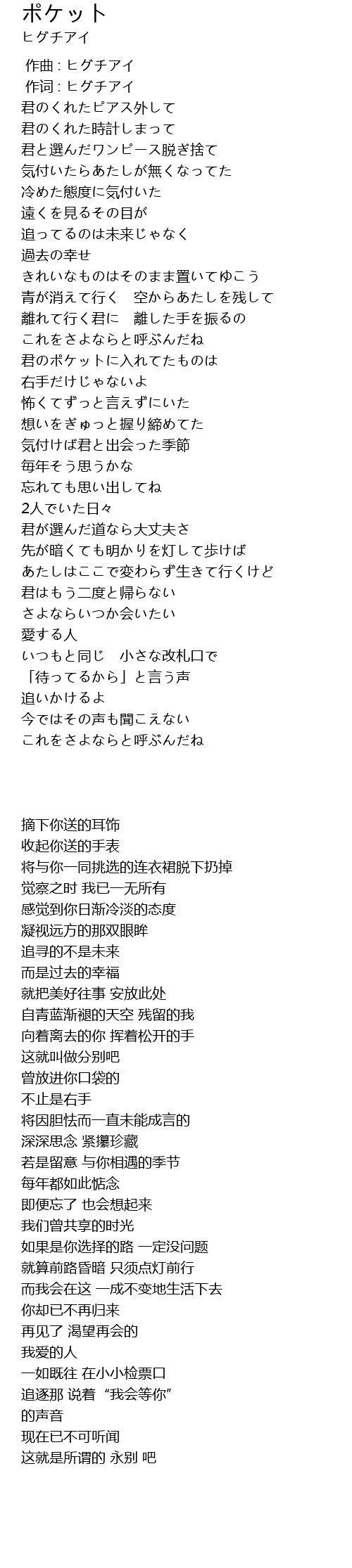 作词 : ヒグチアイ |