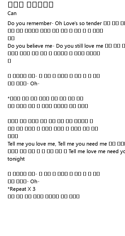 오늘이 가기 전에 다 더 늦기 전에 다 Tell me love me need you tonight |