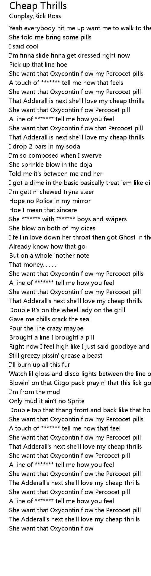 | [02:07.70] | She want that Oxycontin flow my Percocet pills |