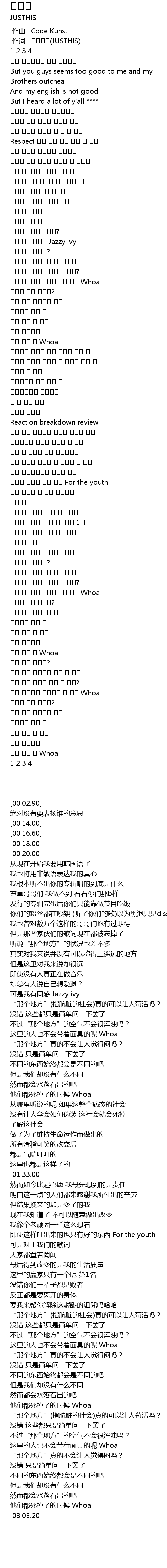 | [00:00.696] | 作词 : 저스디스(JUSTHIS) |