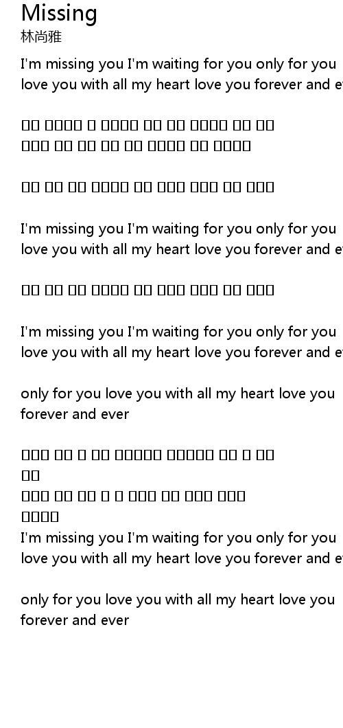 | I' m missing you I' m waiting for you only for you | |