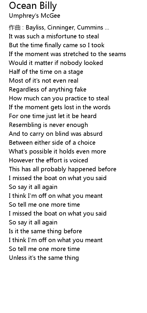 | 歌曲 | Ocean Billy |
