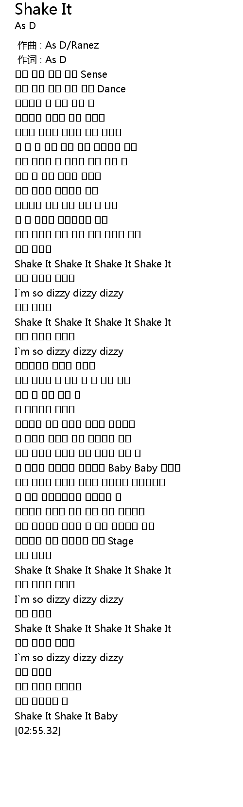| [02:22.10] | Shake It Shake It Shake It Shake It |