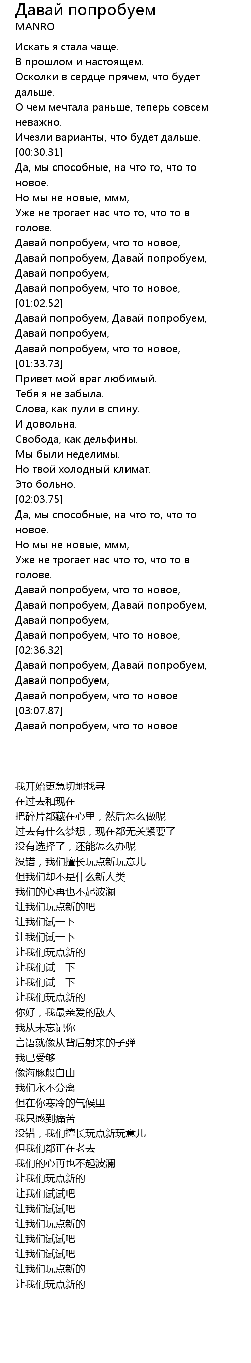| [03:03.55] | Давай попробуем, что то новое |