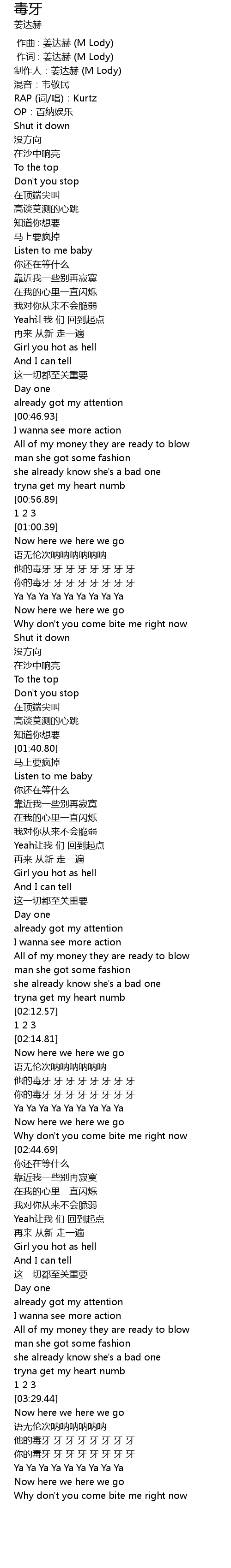 | [01:18.26] | nǐ de dú yá yá yá yá yá yá yá yá |