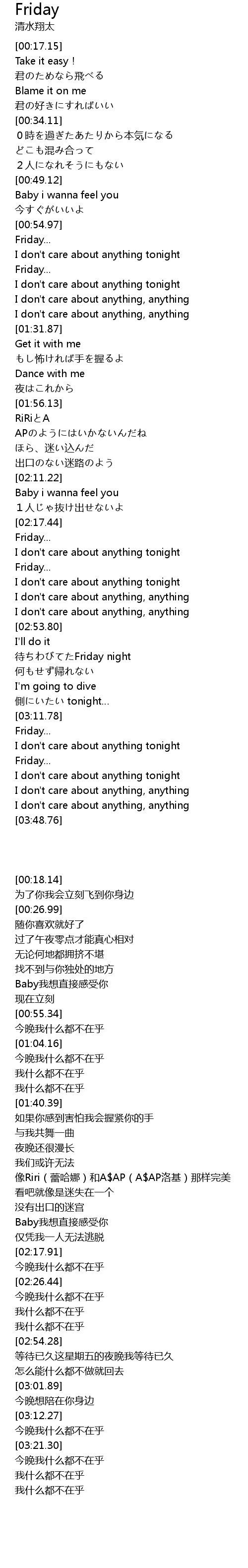 | [03:24.43] | I don't care about anything tonight |