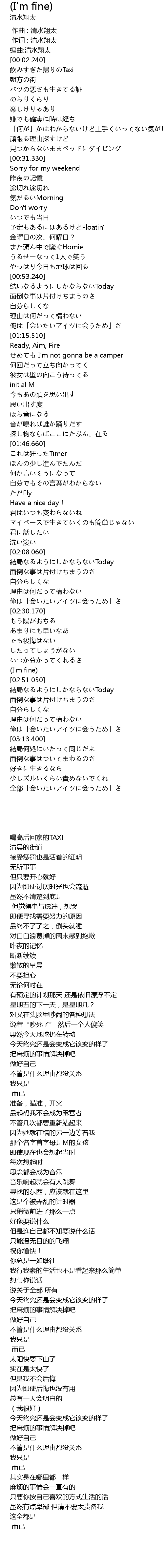 | [00:10.360] | 飲みすぎた帰りのTaxi |