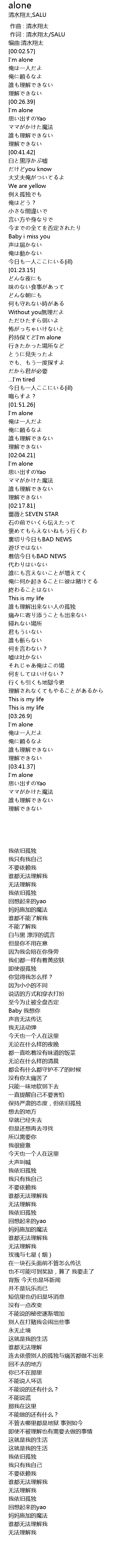| [00:14.33] | I' m alone |