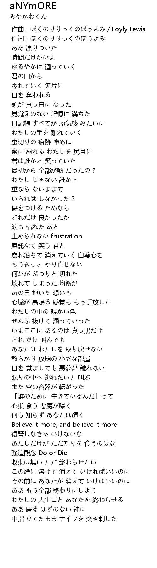 | [02:39.255] | わたしの 人生ごと あなたを 終わらせる |