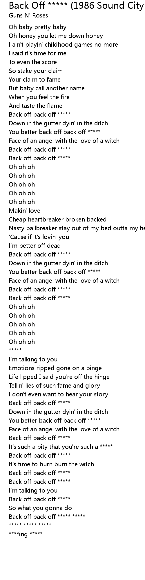 Back Off ***** (1986 Sound City Session) 歌词