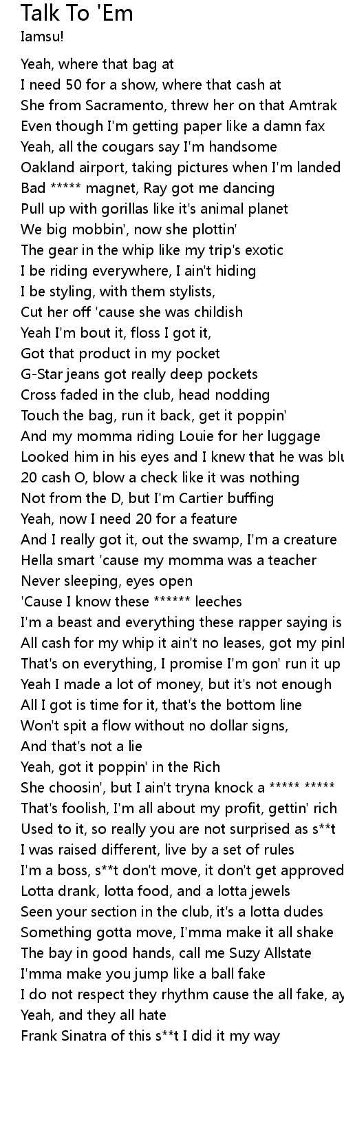 | [01:42.14] | Frank Sinatra of this s**t I did it my way |