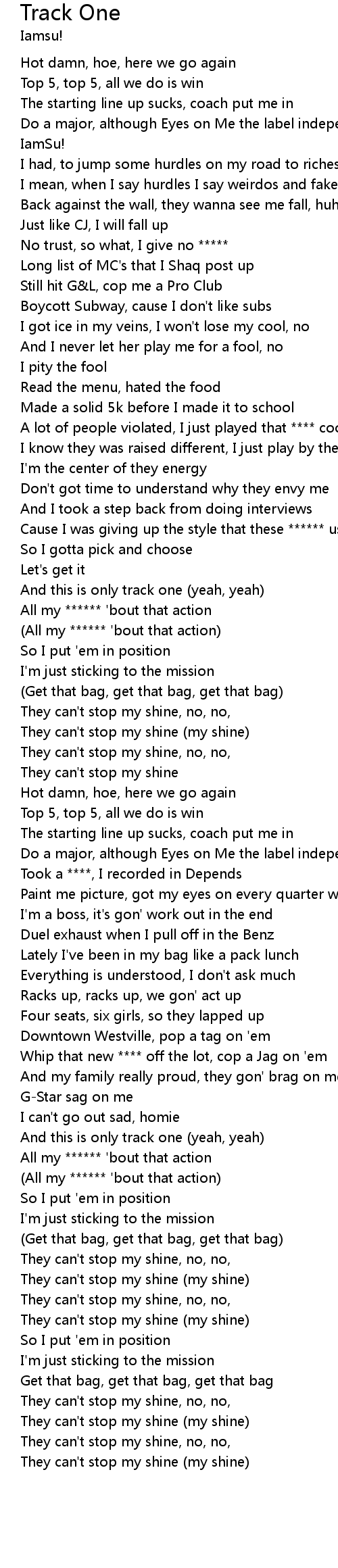 | [02:10.65] | And this is only track one (yeah, yeah) |