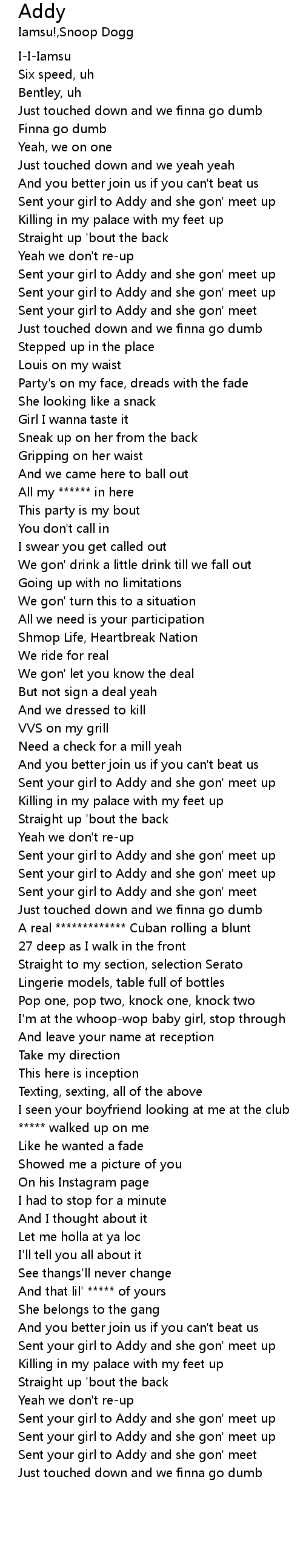 | [00:22.60] | Sent your girl to Addy and she gon' meet up |