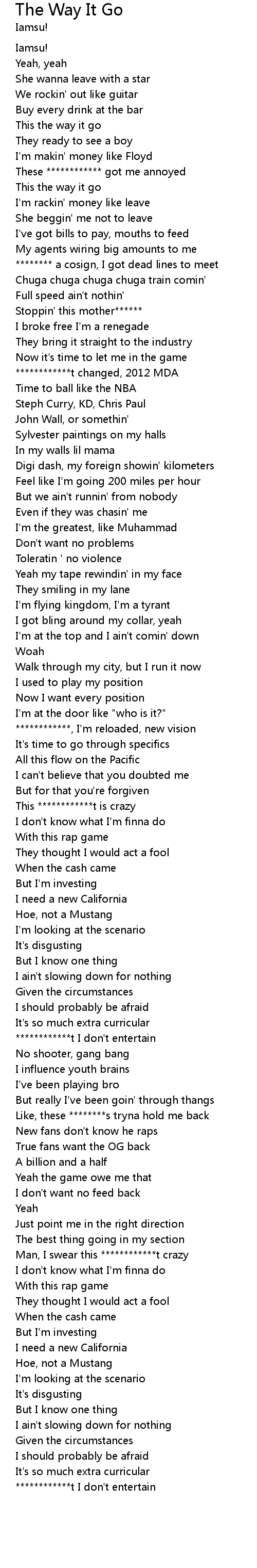 | [02:16.42] | Like, these ********s tryna hold me back |