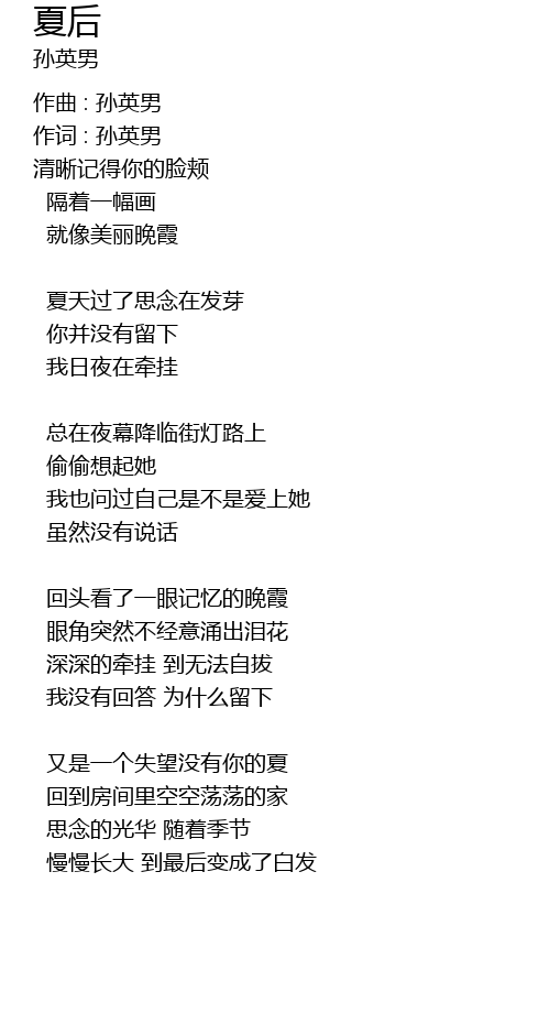 | 作词 : 孙英男 | |