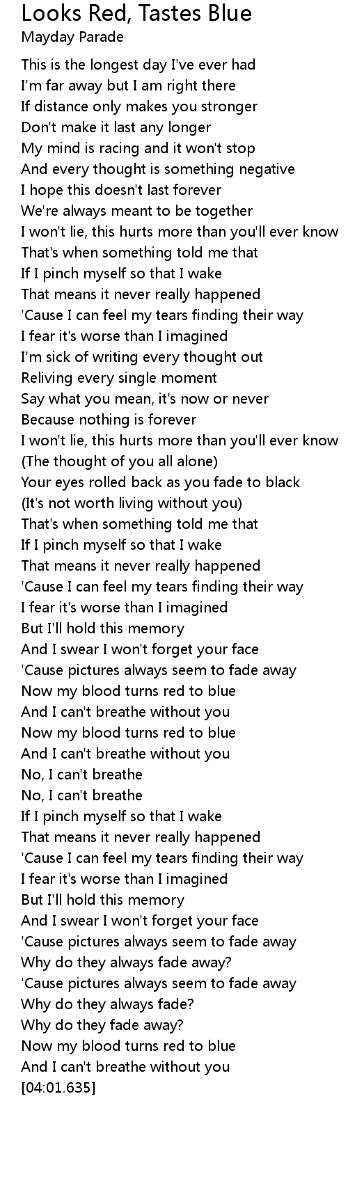 Now my blood turns red to blue |