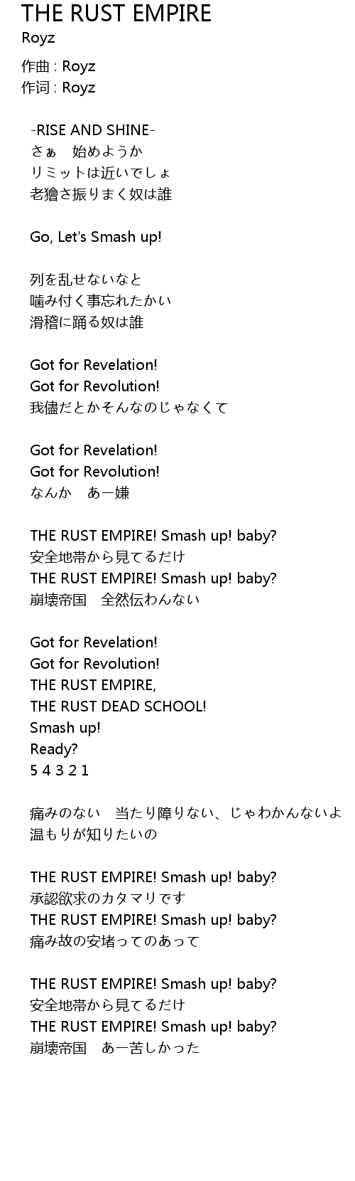 | 歌曲 | THE RUST EMPIRE |