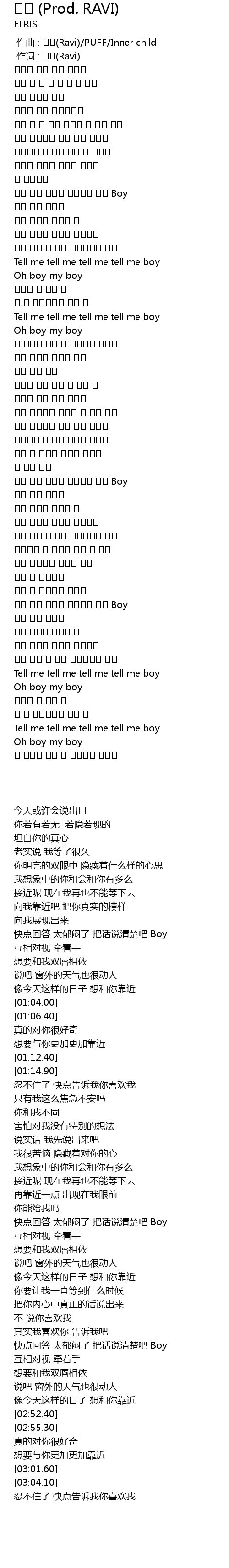 | [00:01.000] | 作词 : 라비(Ravi) |