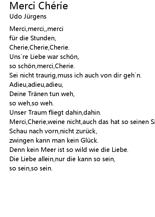 | Merci,Cherie,weine nicht,auch das hat so seinen Sinn. | |