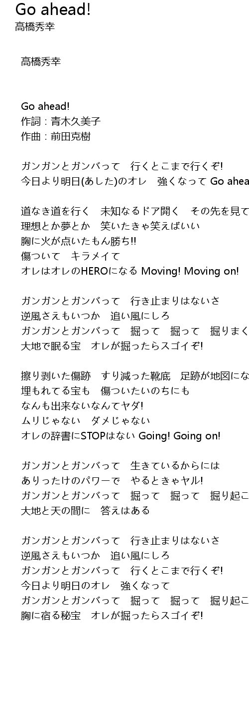 | 今日より明日(あした)のオレ 強くなって Go ahead! | |