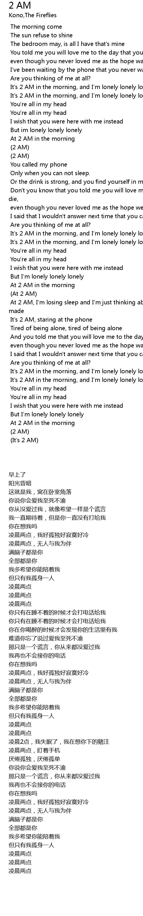 It's 2 AM in the morning, and I'm lonely lonely lonely |