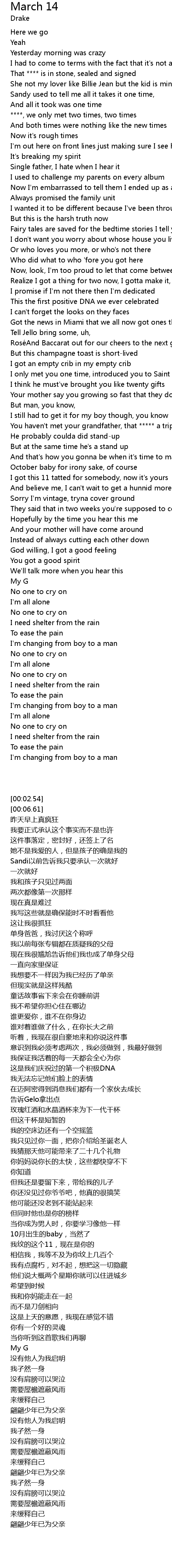 | [01:53.72] | October baby for irony sake, of course |