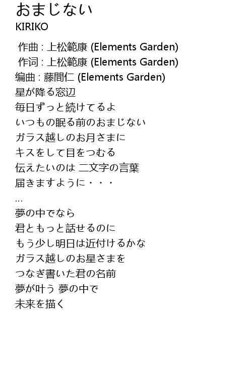 | [00:01.81] | 编曲 : 藤間仁 (Elements Garden) |