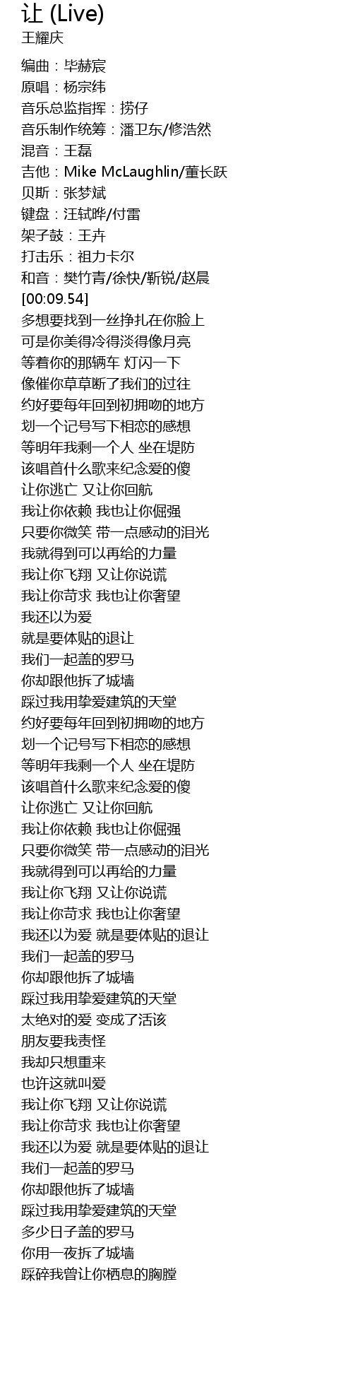 | [00:05.24] | 吉他:Mike McLaughlin/董长跃 |