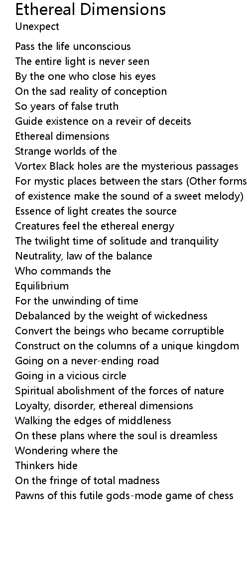 | Ethereal dimensions | |