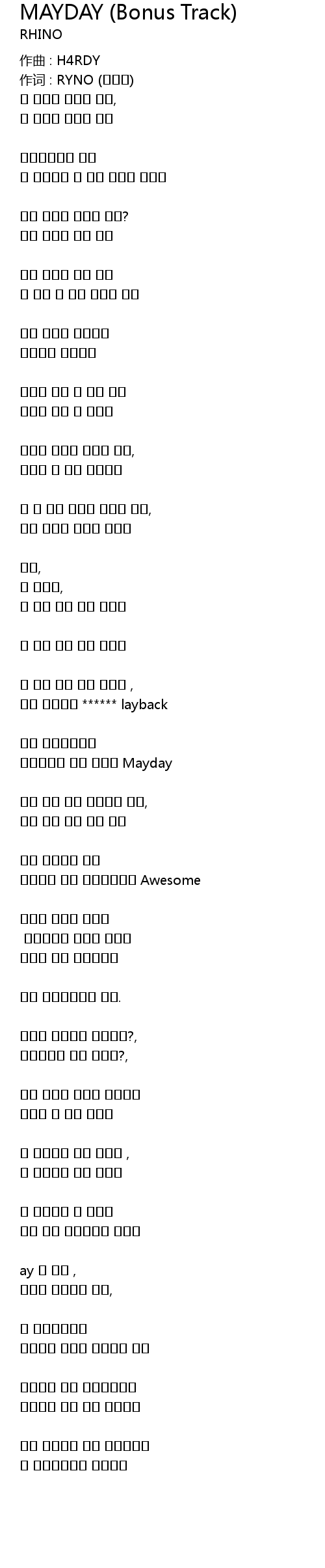 作词 : RYNO (라이노) |