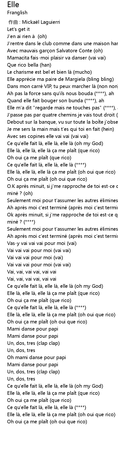 | [00:59.97] | Ce qu'elle fait là, elle là, elle là (****) |