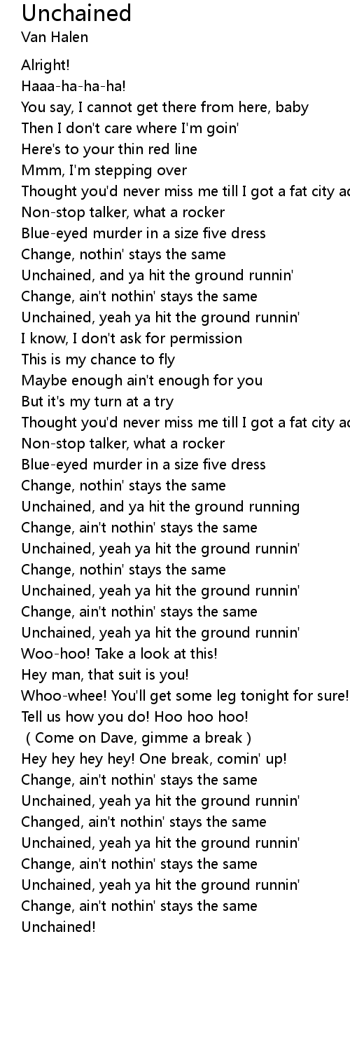 | [02:42.98] | Unchained, yeah ya hit the ground runnin' |