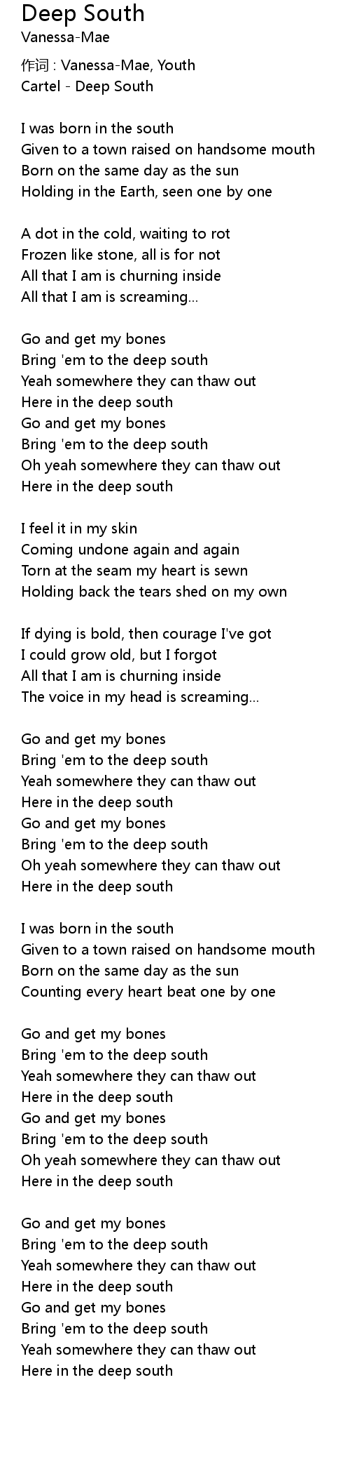 | 歌曲 | Deep South |
