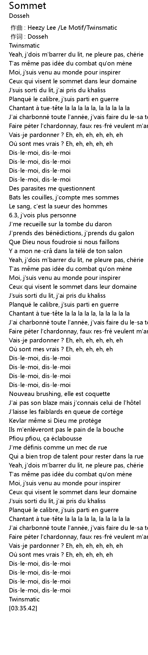 | [02:49.50] | J'ai charbonné toute l'année, j'vais faire du le-sa tout l'été |