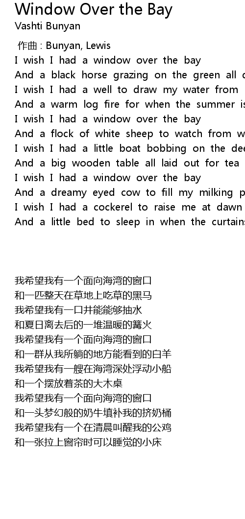| [00:35.45] | 我希望我有一个面向海湾的窗口 |