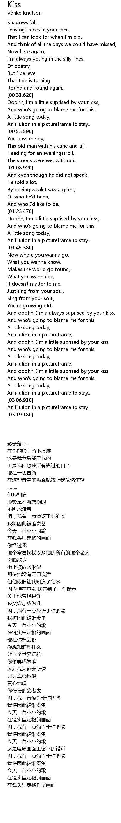 | [02:06.0] | 啊,我一直惊讶于你的吻 |