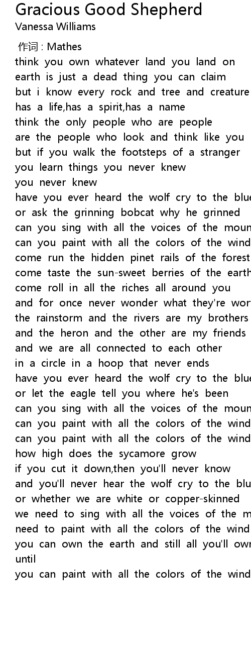 | 歌曲 | Gracious Good Shepherd |