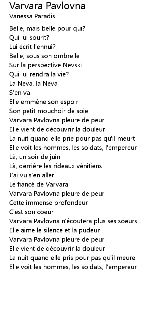 | Varvara Pavlovna n'é coutera plus ses soeurs | |