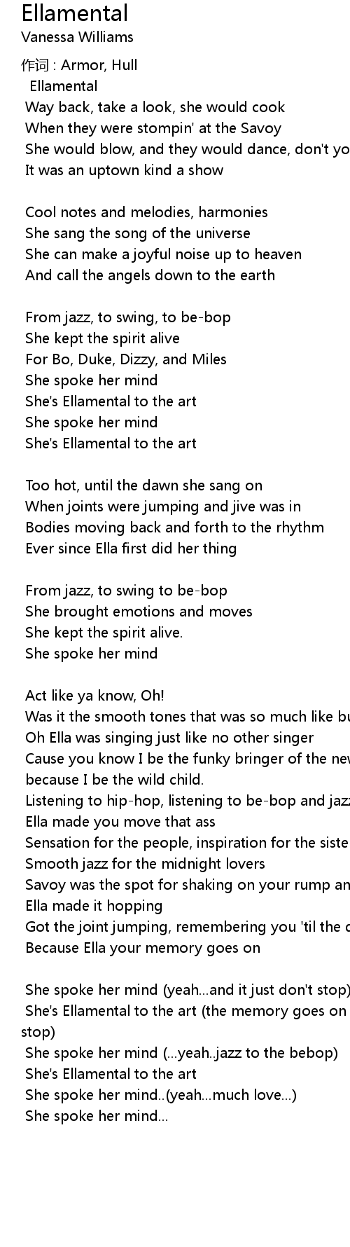 | She' s Ellamental to the art the memory goes on and on...' cause it just don' t stop | |