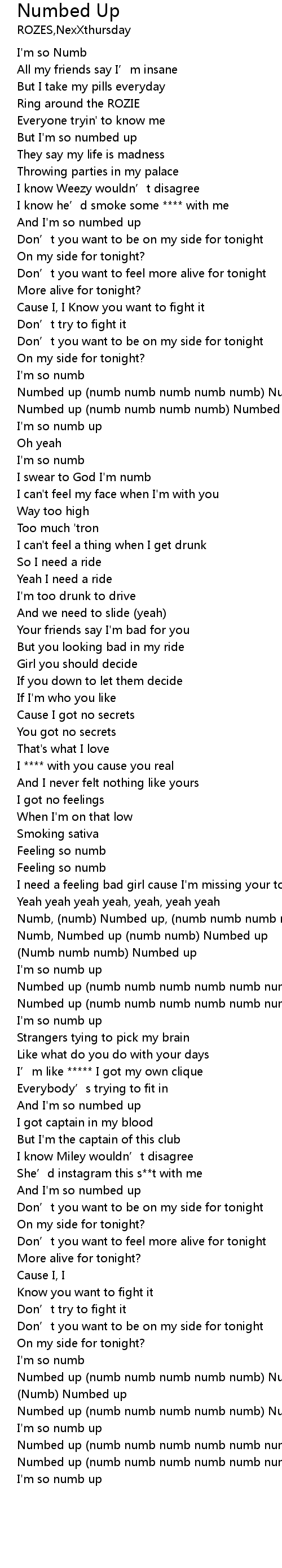 | [02:23.78] | Numbed up (numb numb numb numb numb numb) |