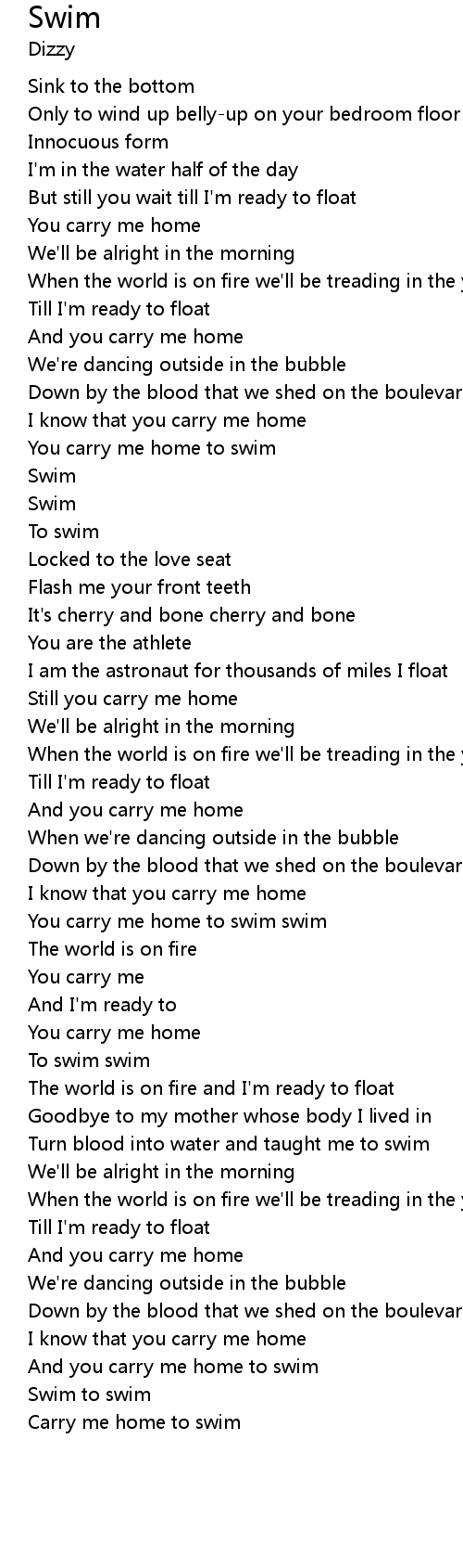 | [00:49.69] | You carry me home to swim |