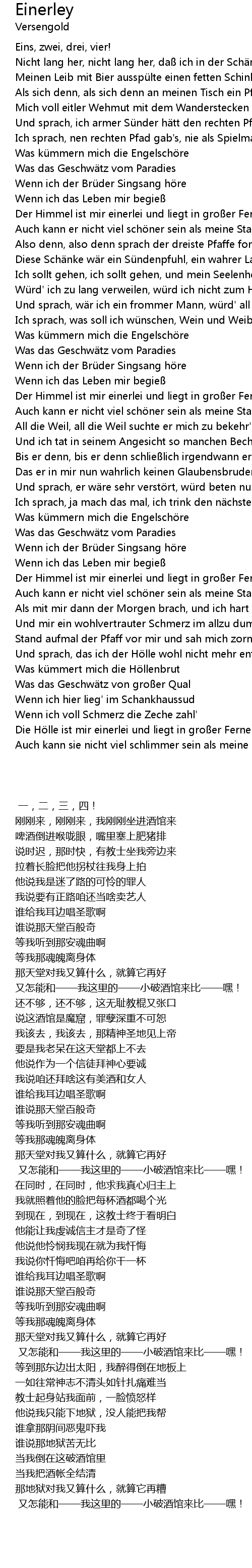 | [01:34.00] | Ich sprach, was soll ich wü nschen, Wein und Weib sind doch schon da |