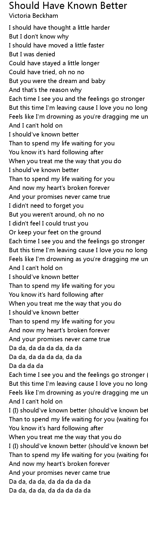 I (I) should've known better (should've known better) |