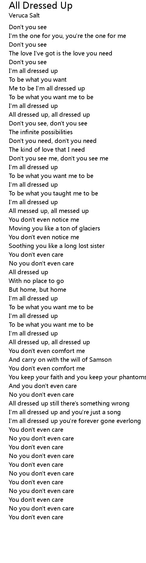 I'm all dressed up and you're just a song |