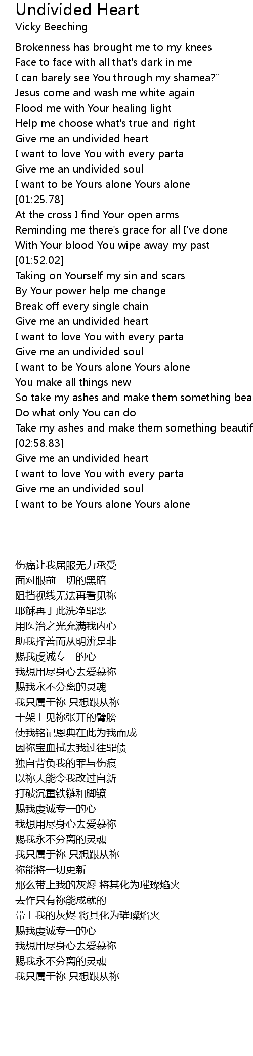 | [03:02.61] | Give me an undivided heart |
