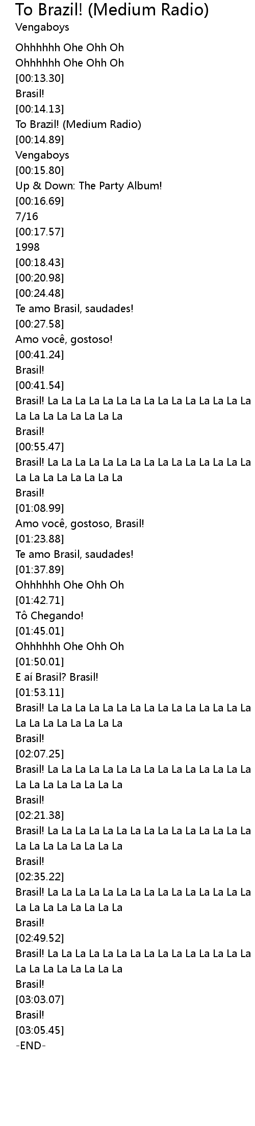 | [02:35.34] | Brasil! La La La La La La La La La La La La La La La La |
