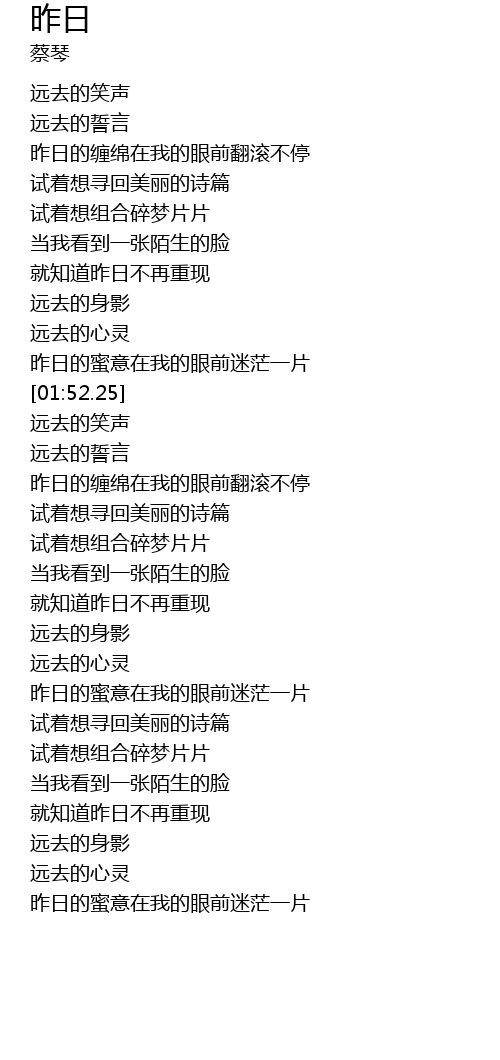 | [01:29.55] | 就知道昨日不再重现 |