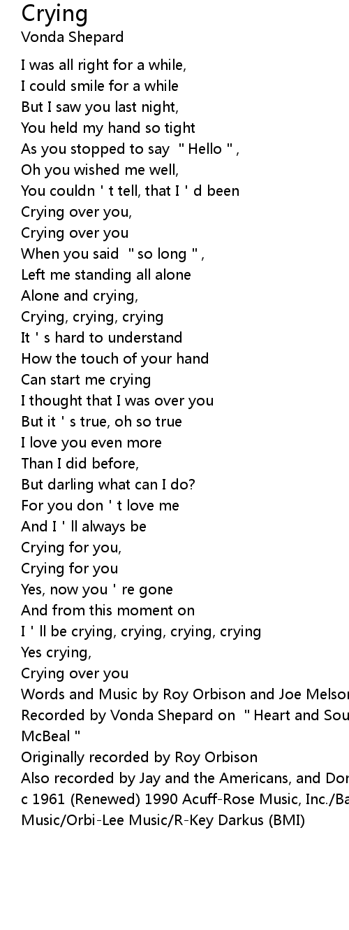 | [01:08.78] | Crying, crying, crying |